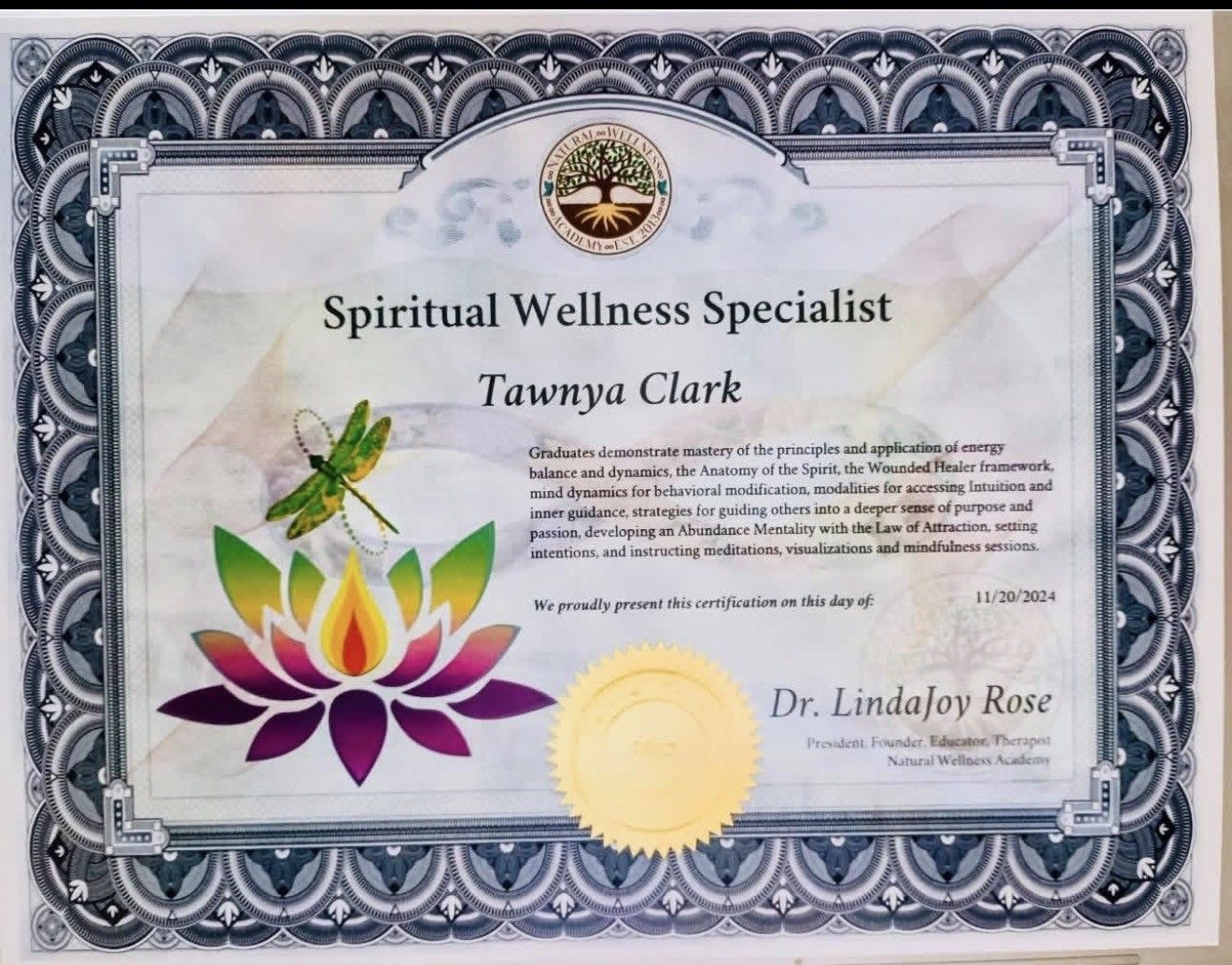 Certified Spiritual Wellness Specialist, meditation instructor, and intuitive guide devoted to helping people reconnect with their authentic identity and soul purpose. My work bridges the worlds of science, spirituality, and lived human experiences. Through intuitive guidance, soul-centered workshops, and creative spiritual tools, I help others navigate awakening, rediscover their inner truth, and move from survival into alignment.